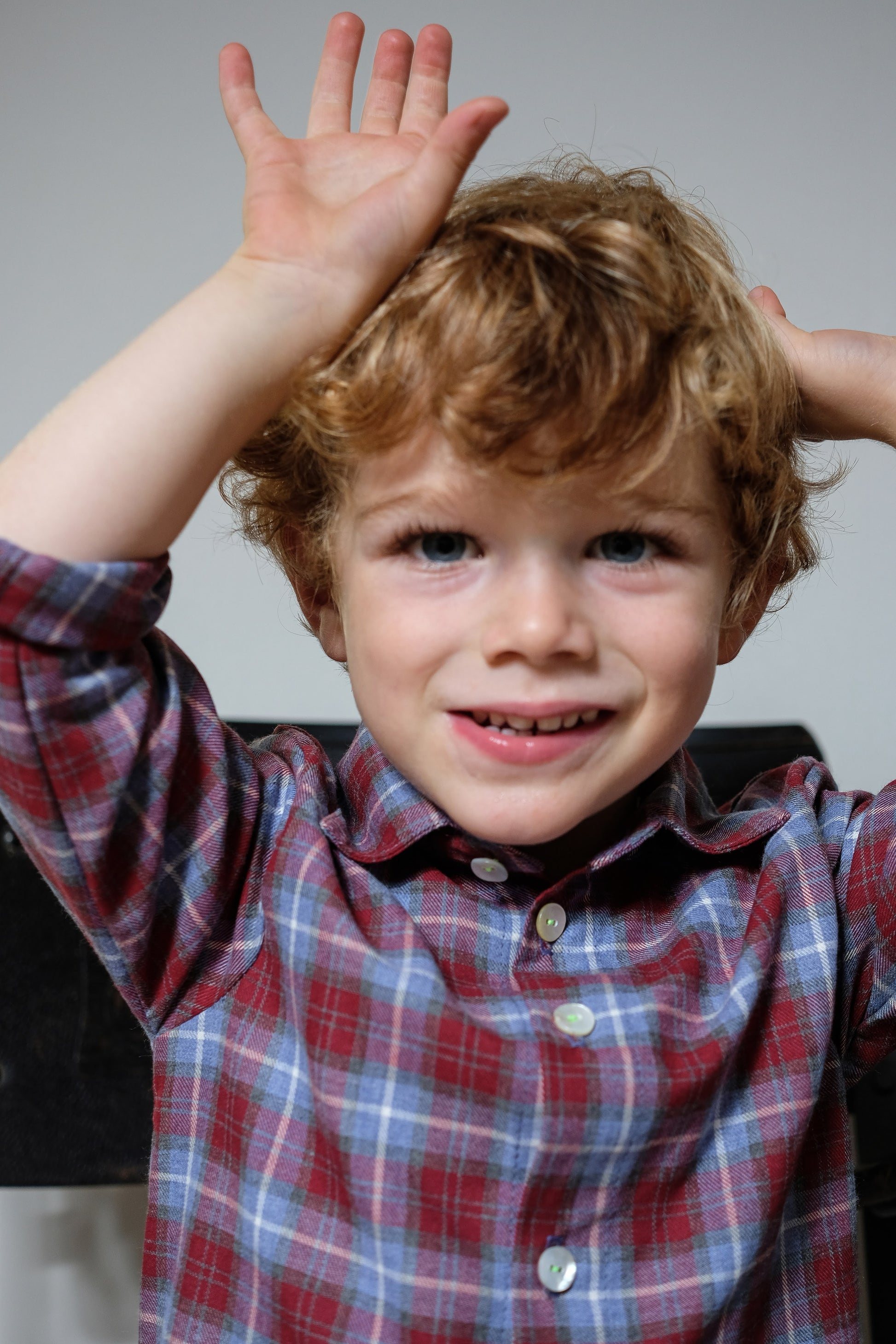 La camicia Olly è il capo perfetto per le giornate più fresche. Realizzata in cotone felpato caldo, avvolge il tuo bambino in un comfort soffice e accogliente, senza rinunciare allo stile. La delicata fantasia quadri rosso e azzurro aggiunge un tocco raffinato e originale, mentre il collo alla francese dona eleganza, rendendola perfetta per ogni occasione.