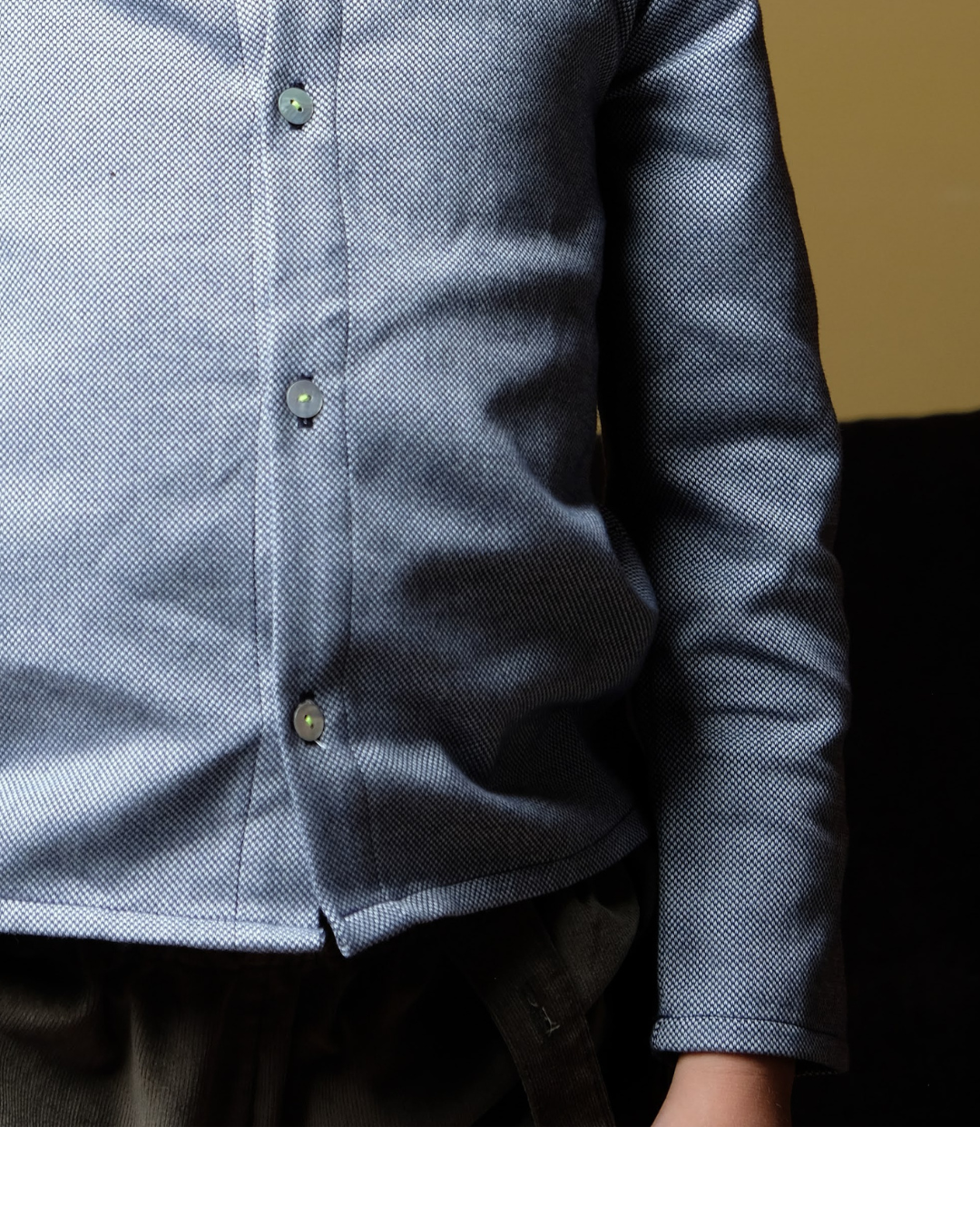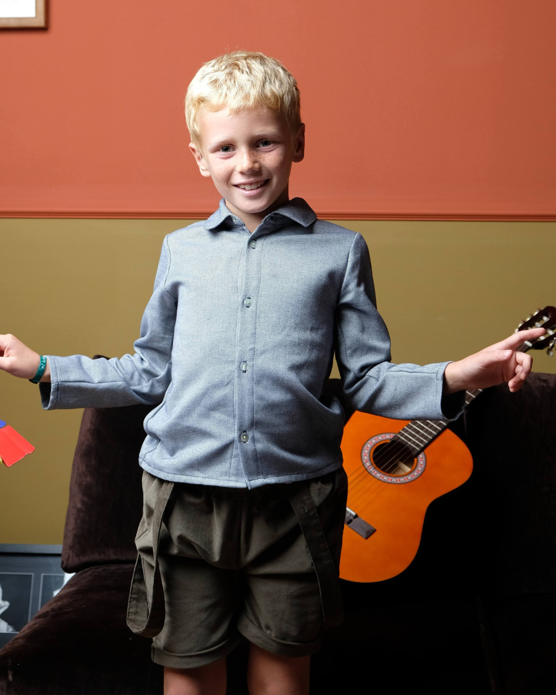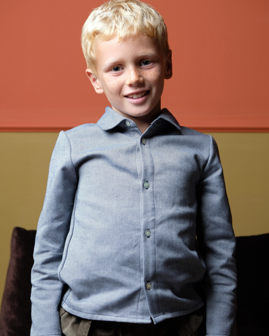 La camicia Olly è il capo perfetto per le giornate più fresche. Realizzata in cotone felpato caldo, avvolge il tuo bambino in un comfort soffice e accogliente, senza rinunciare allo stile. La delicata fantasia grano di riso aggiunge un tocco raffinato e originale, mentre il collo alla francese dona eleganza, rendendola perfetta per ogni occasione.