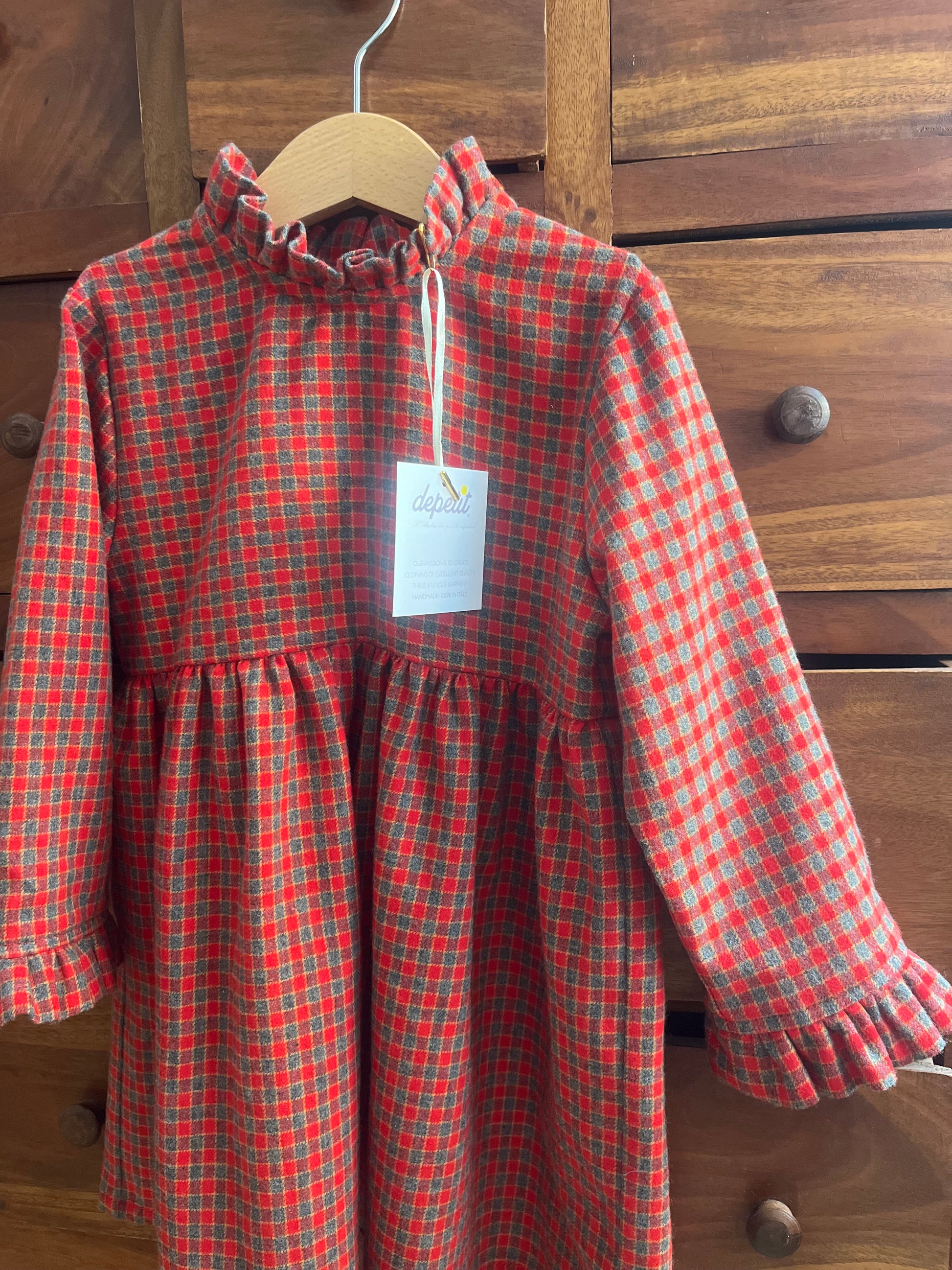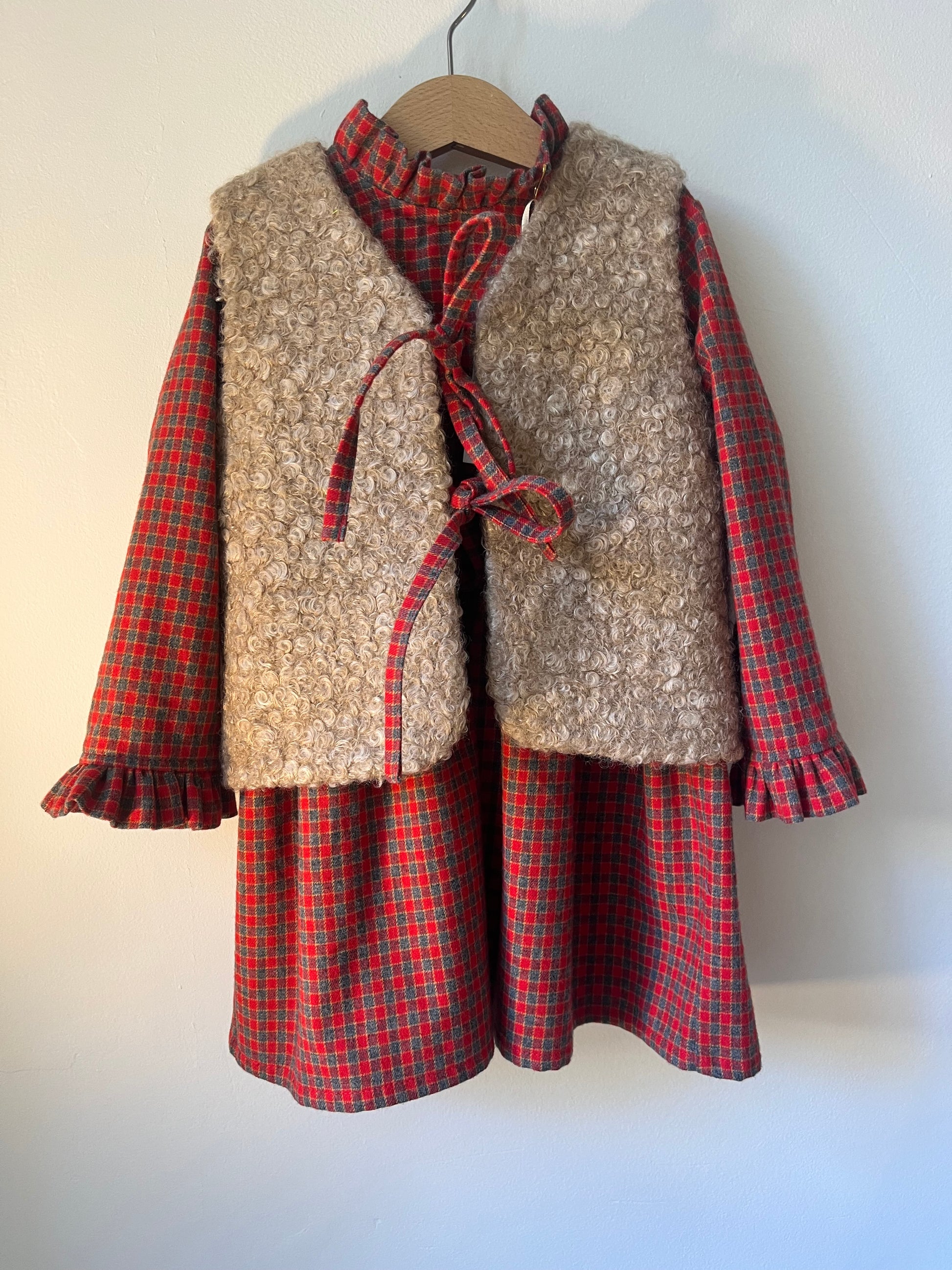 Riscaldate i cuori con il nostro adorabile vestito per bambina, perfetto per la stagione più fredda! Questo modello incantevole presenta una classica fantasia tartan nei toni del rosso e del blu, ideale per le feste o per un look quotidiano raffinato.